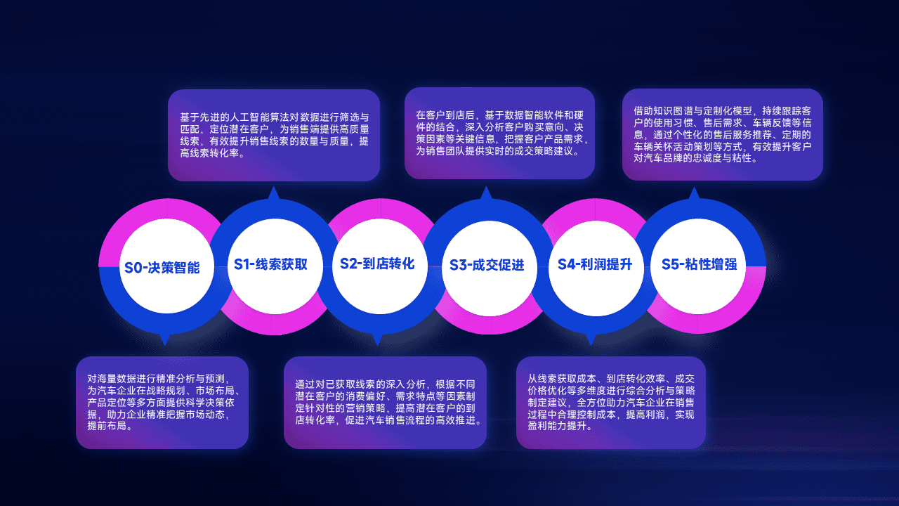 通过拓宽潜在客户来源、、、优化线索分配并提高到店转化率,,,以增强销售效率。。。同时,,,利用线索数据不断优化分析模型,,,有效提升转化率,,,扩大营销影响力。。。。
